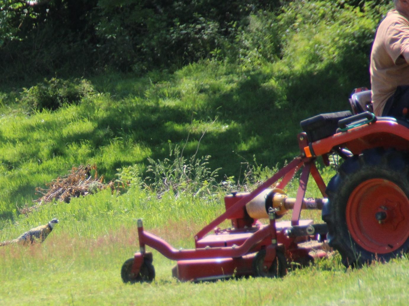 Le faisan fada : un nouveau faisan vénéré a élu domicile sur nos terres. Il ne nous « lâche pas les basques »… suit JP partout. Ce volatile adore courir derrière le tracteur…