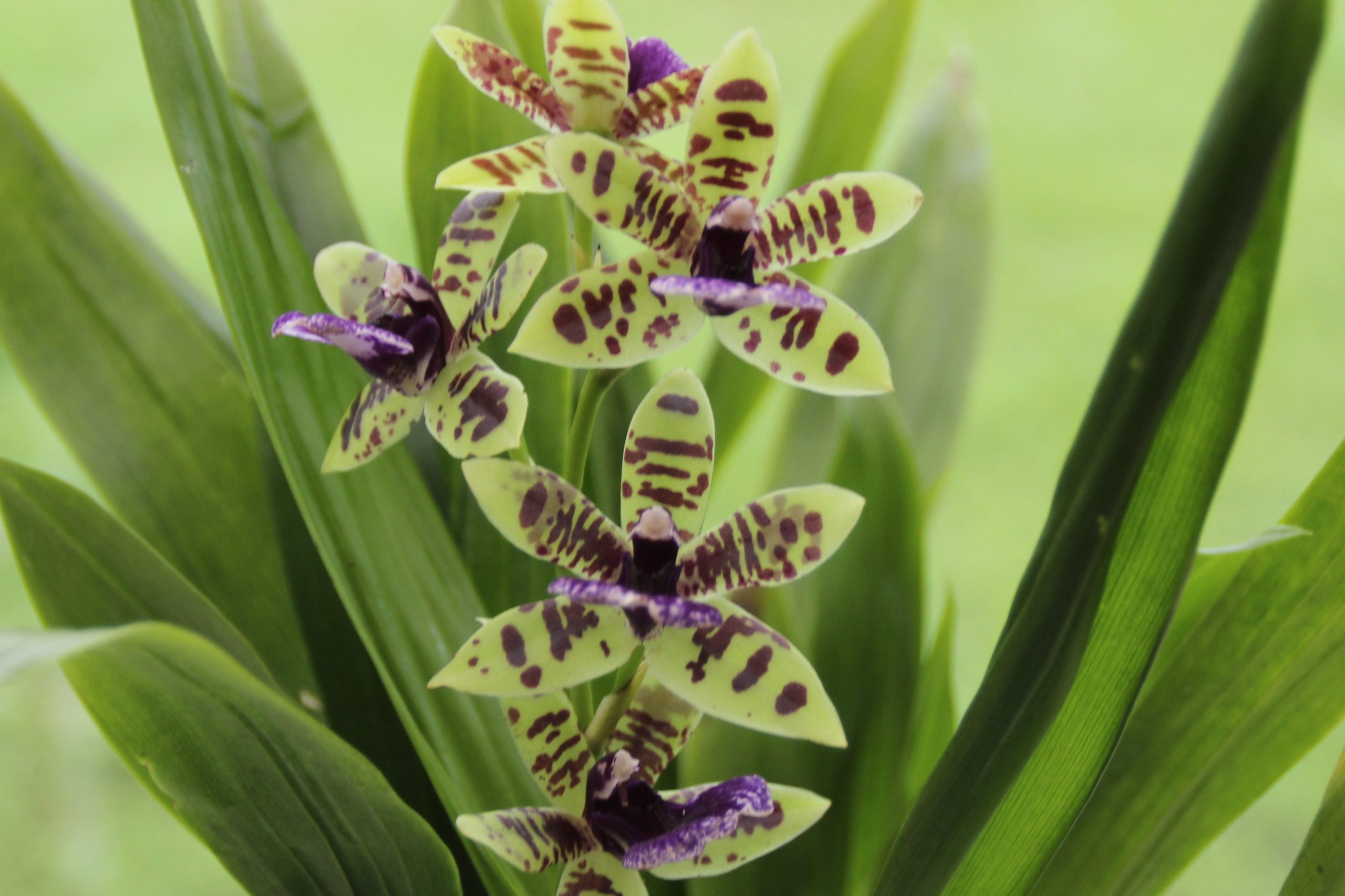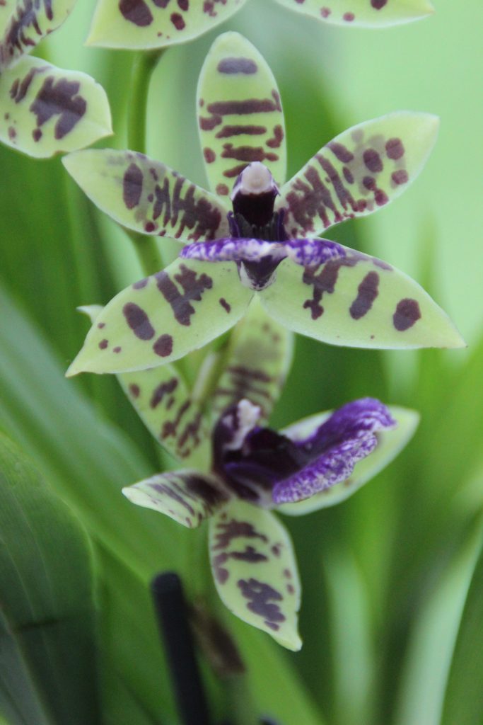 Jolie orchidée que je classerai parmi les : Zygopetalum… si je me trompe, dîtes le moi… longues feuilles, petites fleurs… ses pétales verts sont sublimes. Il existe une quantité incroyable de variétés d’orchidées. C’est une des plus grandes familles de plantes de notre planète et une des plus évoluées du monde végétal. 30 000 variétés sont connues. Elle fleurit sur terre depuis 100 millions d’années.
